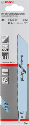 - Bilah Gergaji Bolak-Balik S 922 BF Flexible for Metal dioptimalkan untuk potongan cepat pada logam