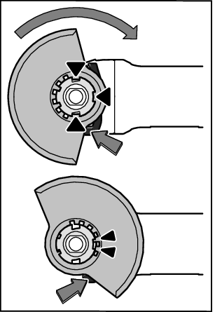 - 唯有通过操纵解锁杆(1)才能使防护罩(10)沿附件的旋转方向转动!否则,在任何条件下都不得继续使用电动工具,必须将其交给客户服务部门。